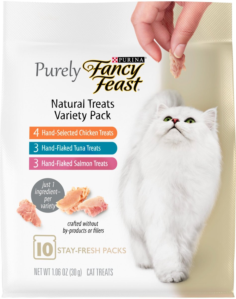 Purina Fancy Feast Purely Natural Chicken, Tuna & Salmon Variety Pack Soft Cat Treat, 10 count