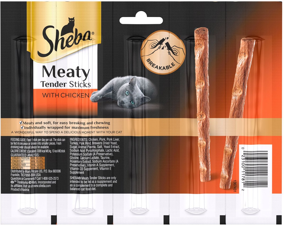 Sheba Meaty Tender Sticks Chicken Flavor Soft Adult Cat Treats, 5 count
